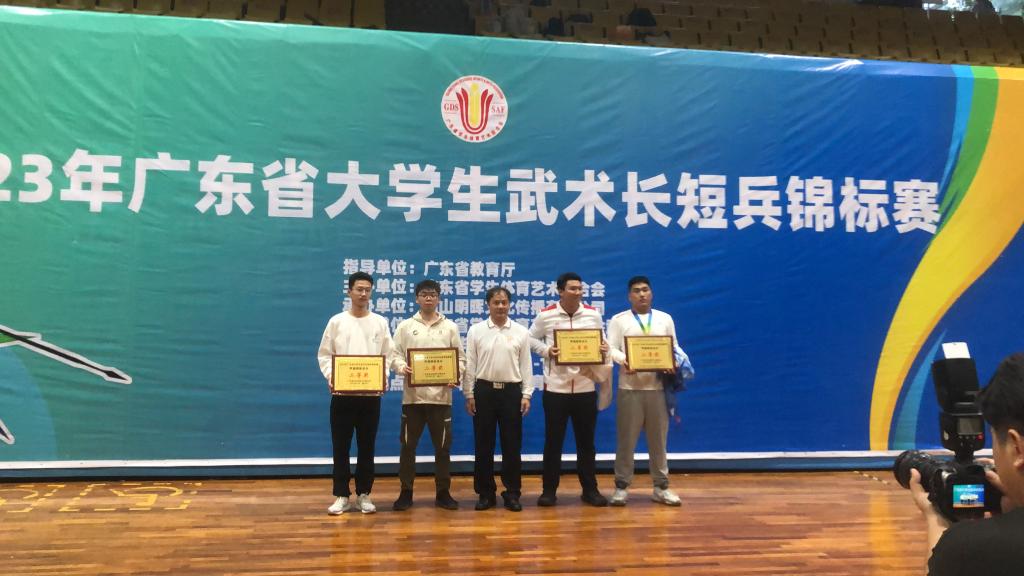 由姚远、杨志林老师带领的我校武术长短兵代表队,经过顽强拼搏,最终以45分的成绩,获团体总分(甲组)二等奖,为学校争得荣誉。本次比赛由广东省学生体育艺术联合会主办,全省共26支队伍参加,强校云集,代表了广东省高校的最高水平。