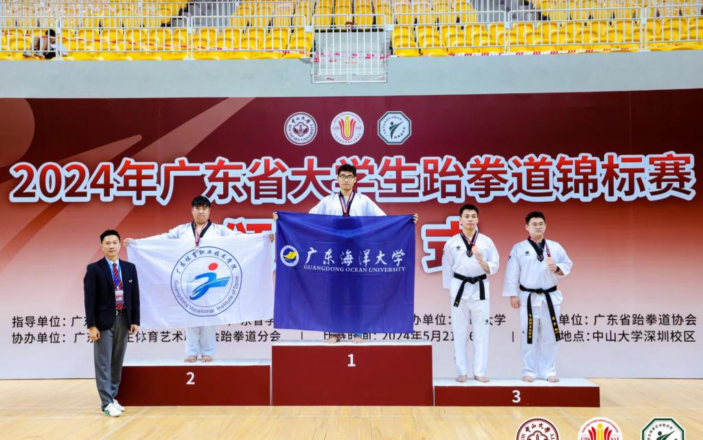 为践行素质教育深谛,铸就学子全能风采,5月21日-5月26日我校跆拳道队参加了由广东省教育厅主办的大学生跆拳道锦标赛。本届广东省跆拳道锦标赛有高校71支队伍,共计820名运动员参加。本次比赛在学校和学院大力支持下,在教练的悉心指导和运动员们的努力拼搏下,我校代表队共计获得金牌1枚,银牌2枚,铜牌2枚,4个第五名,同时获得乙组团体一等奖,甲组团体二等奖的好成绩。这些奖牌充分体现了我校在培养高素质、高水平运动员方面的卓越成效,以及教练团队辛勤付出的成果。这些荣誉的取得,离不开我校跆拳道队全体成员的共同努力和付出。他们平日里刻苦训练,不断提高自己的技战术水平;在比赛中他们敢于拼搏,不畏强手,充分展现了广海学子的风采。在团体项目中,我校跆拳道队同样取得了亮眼的成绩,展现了运动员们团队协作的默契和实力。
