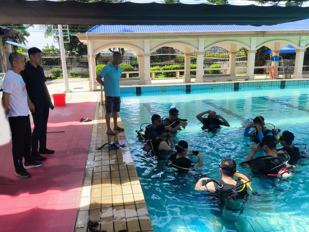 理论培训结束后,教师们在专业教练的指导下,进行了潜水实践操作。从穿戴潜水装备到下潜、上升、水下导航等,每一个环节都得到了细致的指导和实践。教师们纷纷表示,通过实践操作,对潜水有了更深入的了解和体验。