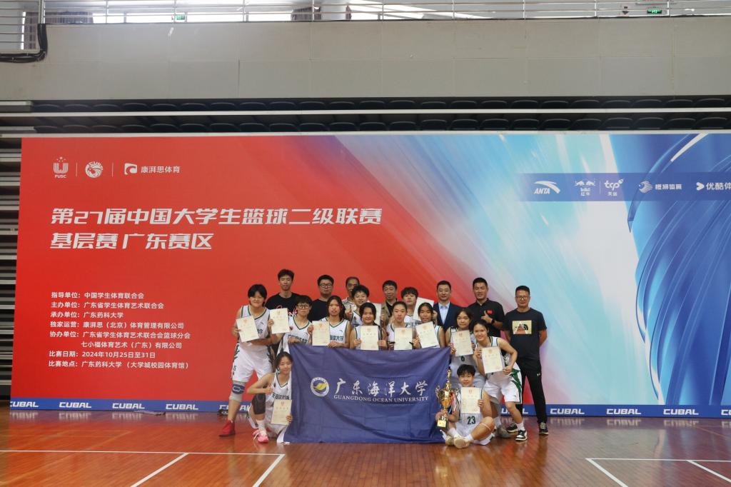 2024年10月25-30日,第27届全国大学生篮球联赛CUBAL二级联赛广东赛区基层赛在广东药科大学展开激战角逐,我校女子篮球队在教练员王立国、谭江波带领下一路过关斩将,先后战胜广州理工学院、广州中医药大学、华南理工大学、中山大学,最终在决赛中击败中山大学女子篮球队,获得CUBAL广东赛区冠军。