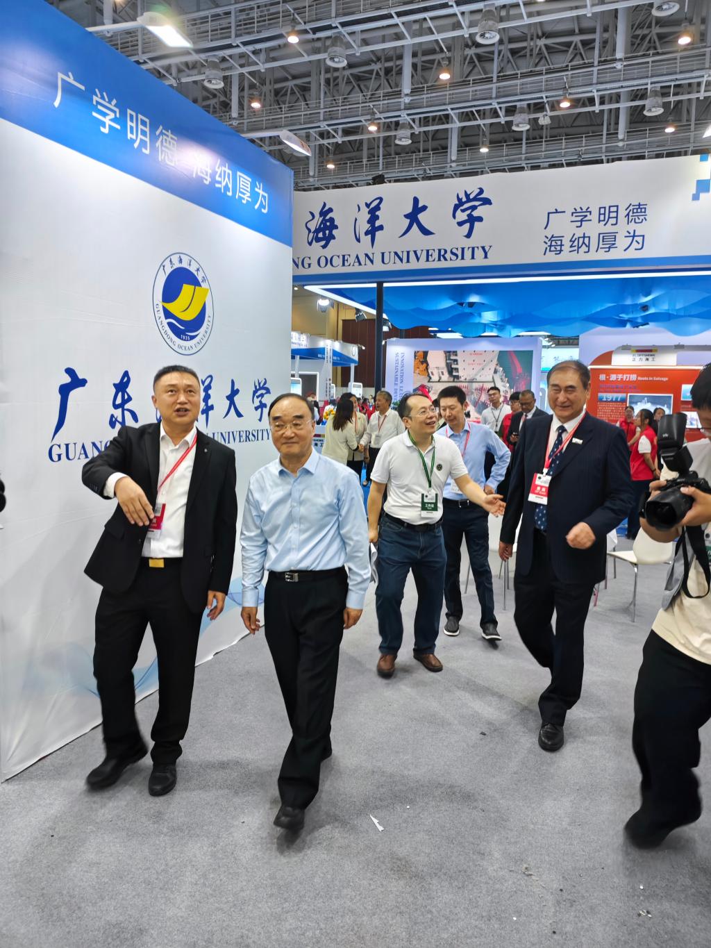 展会期间,在学校展位前,鲁义善向莅临参观的交通运输部原党组副书记、副部长,第十三届全国人大常委会委员翁孟勇汇报了学校依托临海优势,在滨海体育、潜水科学与工程、海上救生等领域的学科建设、人才培养及科研成果转化方面取得的突出成就。翁孟勇同志认真听取了介绍,并对学校在服务海洋强国战略、推动潜水技术与海洋经济发展方面做出的积极探索和贡献给予了充分肯定。