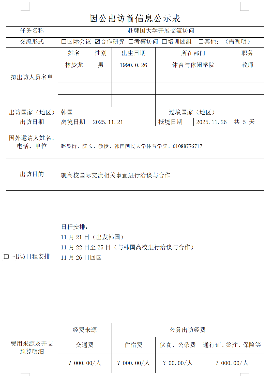 因公出访前信息公示表