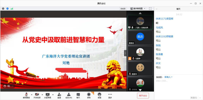 为深入学习贯彻习近平总书记在党史学习教育动员大会上的重要讲话精神,根据学校党委党史学习教育领导小组开展党史学习教育的统一部署,6月2日下午,william英国中文党总支召开腾讯会议开展党史学习教育专题宣讲活动。学校党委理论宣讲团成员刘艳博士作党史学习教育专题宣讲报告,学院领导及部分师生党员共62人参加,宣讲会由学院党总支书记李新华主持。
